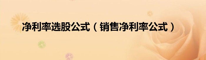 大家好,小常来为大家解答以上问题。净利率选股公式,销售净利率公式很多人还不知道,现在让我们一起来看看吧!