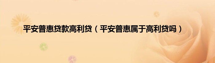 大家好,小常来为大家解答以上问题。平安普惠贷款高利贷,平安普惠属于高利贷吗很多人还不知道,现在让我们一起来看看吧!