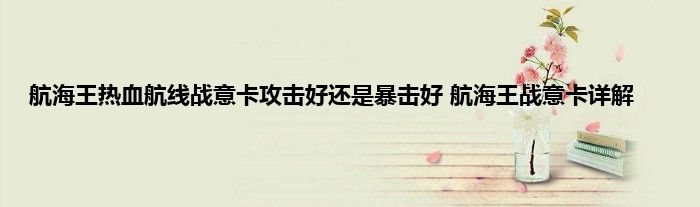 航海王热血航线战意卡是可以选择攻击和暴击的,不同的类型提供的属性也不同,那么航海王热血航线战意卡攻击好还是暴击好?蚕豆小编为您带来航海王热血航线战意卡要攻击还是暴击介绍。