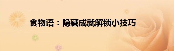 小编今天给各位玩家朋友们带来的是食物语:隐藏成就解锁小技巧,有记得的玩家朋友吗?不记得也没有关系,小编已经帮助大家把食物语:隐藏成就解锁小技巧找了出来,你只需要动动你的小手就可以轻松知道啦,快来瞧一瞧吧。