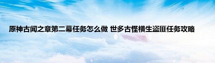 原神古闻之章第二幕世多古怪横生盗匪任务攻略