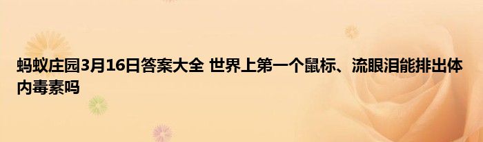2021年3月16日蚂蚁庄园答案是什么?3月16日蚂蚁庄园的答案很多的玩家都不清楚,这两个问题有:流眼泪能排出体内毒素吗?世界上第一个鼠标的外壳是用什么做的?下面小编给大家介绍一下具体的答案和解析,一起来看看吧。