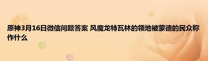 原神微信公众号中,每天都会提出一个跟游戏有关的问题,回答正确就可以获得一些奖励。3月16日原神公众号的问题是:请问风魔龙特瓦林的领地被蒙德的民众称作什么?相信有很多对游戏不太熟悉的小伙伴不太清楚答案是什么,如果不清楚的话来看看答案介绍吧。