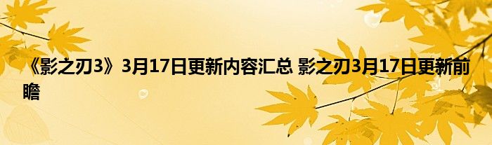 以上就是关于影之刃3 3月17日的更新前瞻了,希望对大家有所帮助。