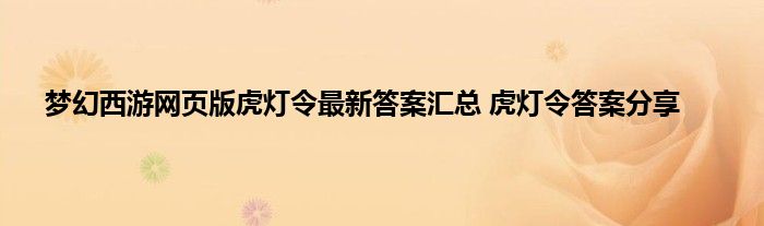 梦幻西游网页版迎来了周年庆典,有很多的新活动,活动将限时开启,其中有一个虎灯令的答案,很多玩家不知道答案是什么,下面就来尾随小编一起来看看第一期虎灯令的答案,希翼能帮到大家。