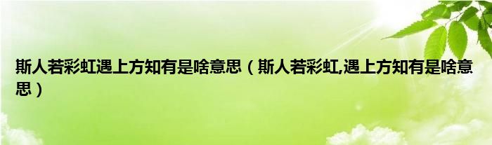 大家好,小科来为大家解答以上问题。斯人若彩虹遇上方知有是啥意思,斯人若彩虹,遇上方知有是啥意思很多人还不知道,现在让我们一起来看看吧!