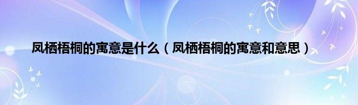 大家好,小科来为大家解答以上问题。凤栖梧桐的寓意是什么,凤栖梧桐的寓意和意思很多人还不知道,现在让我们一起来看看吧!