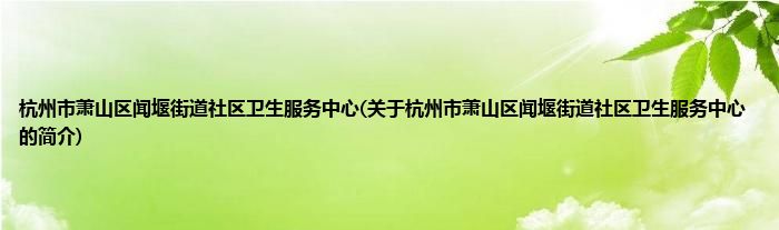 本文关于杭州市萧山区闻堰街道社区卫生服务中心的简介就讲解完毕,希望对大家有所帮助。