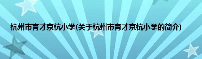 本文关于杭州市育才京杭小学的简介就讲解完毕,希望对大家有所帮助。