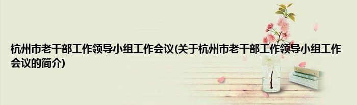1、 杭州市老干部工作领导小组工作会议是杭州市召开的会议。