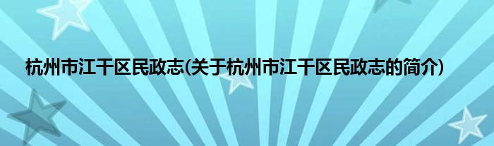 本文关于杭州市江干区民政志的简介就讲解完毕,希望对大家有所帮助。