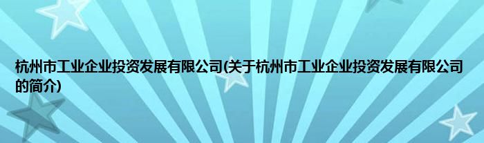 本文关于杭州市工业企业投资发展有限公司的简介就讲解完毕,希望对大家有所帮助。