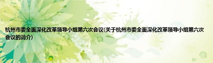 1、 杭州市委全面深化改革领导小组第六次会议是杭州市召开的会议。
