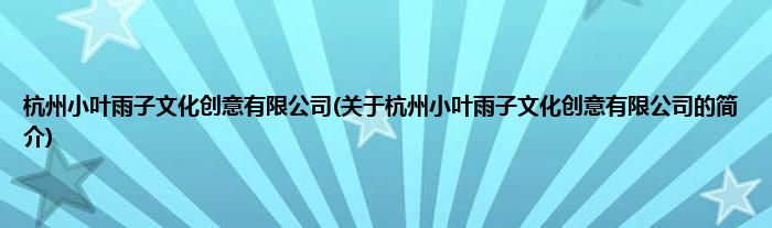 本文关于杭州小叶雨子文化创意有限公司的简介就讲解完毕,希望对大家有所帮助。