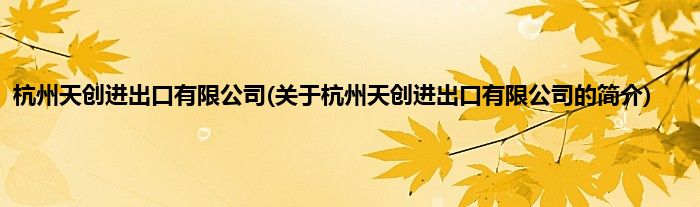 本文关于杭州天创进出口有限公司的简介就讲解完毕,希望对大家有所帮助。