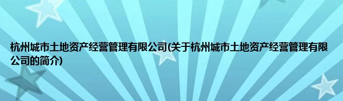 本文关于杭州城市土地资产经营管理有限公司的简介就讲解完毕,希望对大家有所帮助。