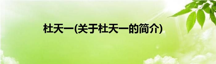 大家好,杜天一,关于杜天一的简介很多人还不知道,现在让我们一起来看看吧!
