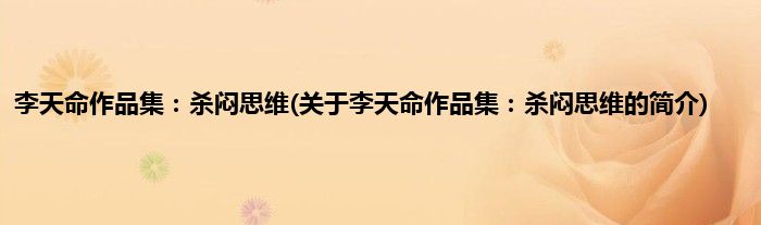 本文关于李天命作品集:杀闷思维的简介就讲解完毕,希望对大家有所帮助。