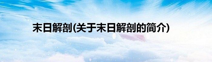 本文关于末日解剖的简介就讲解完毕,希望对大家有所帮助。