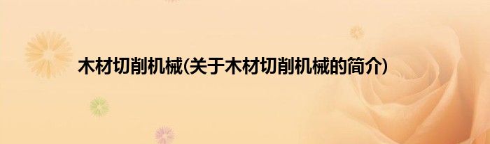 本文关于木材切削机械的简介就讲解完毕,希望对大家有所帮助。