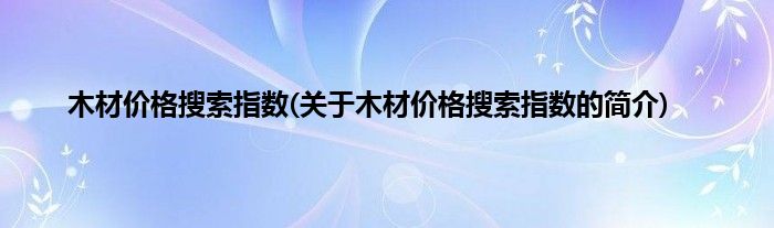 本文关于木材价格搜索指数的简介就讲解完毕,希望对大家有所帮助。