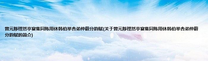 本文关于曾元陟铿然亭宴集同陈用休韩伯举舍弟仲蔚分韵赋的简介就讲解完毕,希望对大家有所帮助。