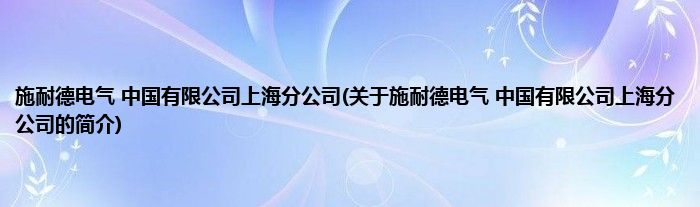 1、 施耐德电气(中国)有限公司上海分公司于1996年09月02日成立。