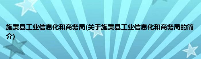 大家好,施秉县工业信息化和商务局,关于施秉县工业信息化和商务局的简介很多人还不知道,现在让我们一起来看看吧!