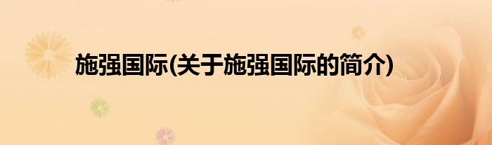 大家好,施强国际,关于施强国际的简介很多人还不知道,现在让我们一起来看看吧!
