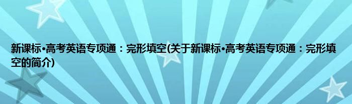 大家好,新课标·高考英语专项通:完形填空,关于新课标·高考英语专项通:完形填空的简介很多人还不知道,现在让我们一起来看看吧!