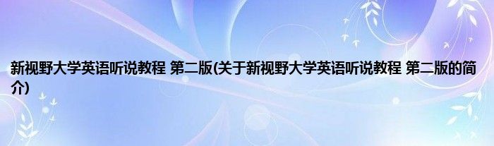 本文关于新视野大学英语听说教程 第二版的简介就讲解完毕,希望对大家有所帮助。