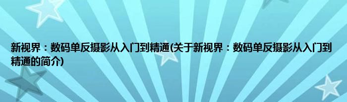 1、 《新视界:数码单反摄影从入门到精通》是针对摄影爱好者而写的一本普及型摄影读物,既可以作为摄影爱好者的入门指导书,也可以作为广大摄影发烧友巩固、提高摄影知识的参考书。