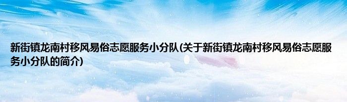 本文关于新街镇龙南村移风易俗志愿服务小分队的简介就讲解完毕,希望对大家有所帮助。