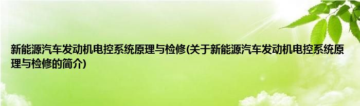 本文关于新能源汽车发动机电控系统原理与检修的简介就讲解完毕,希望对大家有所帮助。