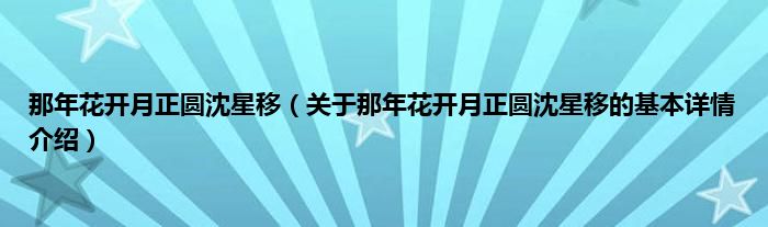 本文关于那年花开月正圆沈星移的基本详情介绍就讲解完毕,希望对大家有所帮助。