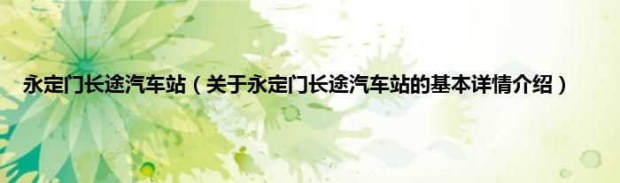 本文关于永定门长途汽车站的基本详情介绍就讲解完毕,希望对大家有所帮助。