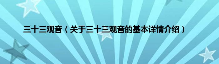 本文关于三十三观音的基本详情介绍就讲解完毕,希望对大家有所帮助。