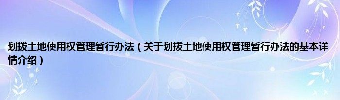 本文关于划拨土地使用权管理暂行办法的基本详情介绍就讲解完毕,希望对大家有所帮助。