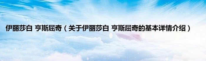本文关于伊丽莎白 亨斯屈奇的基本详情介绍就讲解完毕,希望对大家有所帮助。