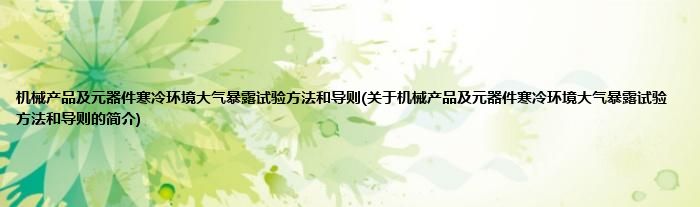大家好,机械产品及元器件寒冷环境大气暴露试验方法和导则,关于机械产品及元器件寒冷环境大气暴露试验方法和导则的简介很多人还不知道,现在让我们一起来看看吧!