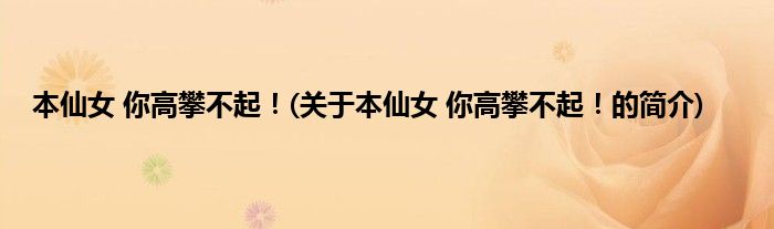 大家好,本仙女,你高攀不起!,关于本仙女,你高攀不起!的简介很多人还不知道,现在让我们一起来看看吧!