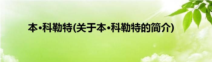 大家好,本·科勒特,关于本·科勒特的简介很多人还不知道,现在让我们一起来看看吧!