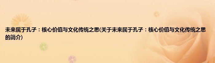 本文关于未来属于孔子:核心价值与文化传统之思的简介就讲解完毕,希望对大家有所帮助。
