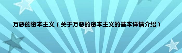 本文关于万恶的资本主义的基本详情介绍就讲解完毕,希望对大家有所帮助。
