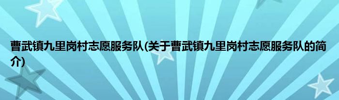 本文关于曹武镇九里岗村志愿服务队的简介就讲解完毕,希望对大家有所帮助。