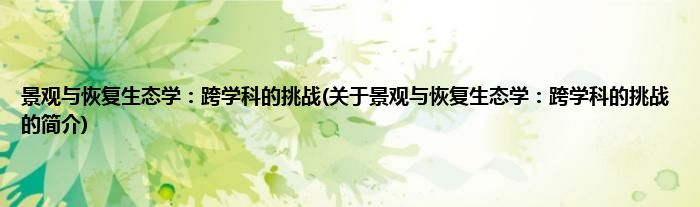 大家好,景观与恢复生态学:跨学科的挑战,关于景观与恢复生态学:跨学科的挑战的简介很多人还不知道,现在让我们一起来看看吧!