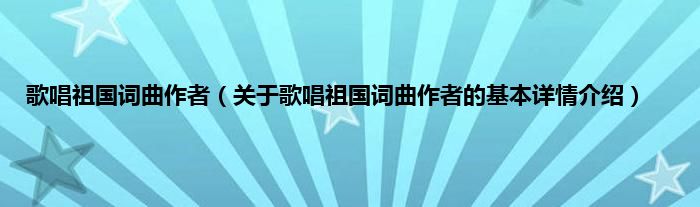 本文关于歌唱祖国词曲作者的基本详情介绍就讲解完毕,希望对大家有所帮助。