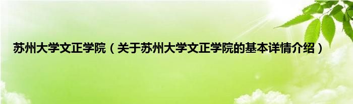 本文关于苏州大学文正学院的基本详情介绍就讲解完毕,希望对大家有所帮助。