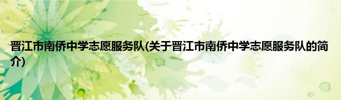 本文关于晋江市南侨中学志愿服务队的简介就讲解完毕,希望对大家有所帮助。