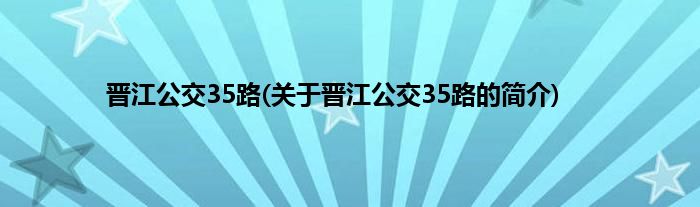 大家好,晋江公交35路,关于晋江公交35路的简介很多人还不知道,现在让我们一起来看看吧!